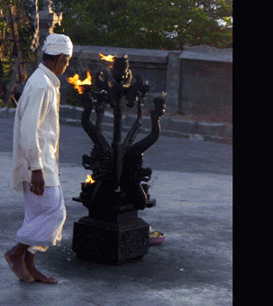 適当に株とか手を出さなくてよかった…大したことない額でしかもリスクの高い運用は避けてあるのに、それでも軽く50万~の損失出してるんだよ。がくがく。紙の上だけですけどね。 リクエストがあったので、「旅の途中で恋に落ちた私のヒーロー」を。 周りに観光客がうろうろしてるけど気にせず儀式を始めるヒーロー。 頭にお米を撒いて清めるヒーロー。 もがくサル(白熊だと思っていたがサルだったらしいです。バリ島に白熊はいないな。)に構わず作業を進めるヒーロー。 画像加工してます。実際はだいぶ暗い。 ▽語るよ!▽ ケチャダンス、というのはバリ島の伝統舞踊(といっても今の形になったのは20世紀入ってから)で、楽器がなく大勢の男性のかけ声だけで演じるもの。 私が見に行ったのは、伝統儀式の形をとってはいるけど観光客向けのショーになってて、後半で出てくる演じ手とかはおどけて見せたり観客にちょっかい出したり、お祭り騒ぎなのですが、この「神事」全体を司る神官?がこのヒーロー。一番重要な役割なのにものすごく地味で誰も注目しない。 ヒーローは儀式が始まるとも認識されてないごちゃつきの中で淡々と点火を行い、祈りを捧げ、騒々しい観光客を余所に清めの儀式をし、お祭り騒ぎの中でも無表情を崩さず役目を遂行し、オーバーアクションな役者を相手に静かに儀式を司るのです。この人、本職だ。 黙々と、顔色ひとつ変えず、ただ黙々と自分の仕事をしている姿に惚れました、私のヒーロー。 --------------- ▽メルフォおへんじ▽ >Nya氏:さる怖がらせてないです。怖がったのは私です。ヒーローはとてもときめきなんだ。