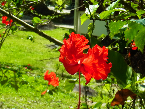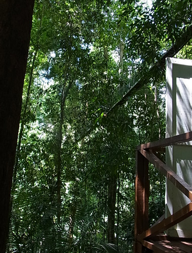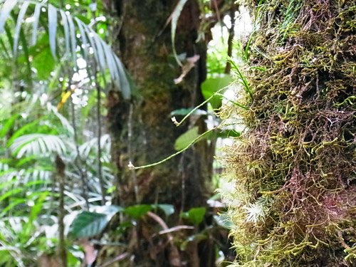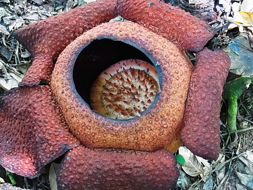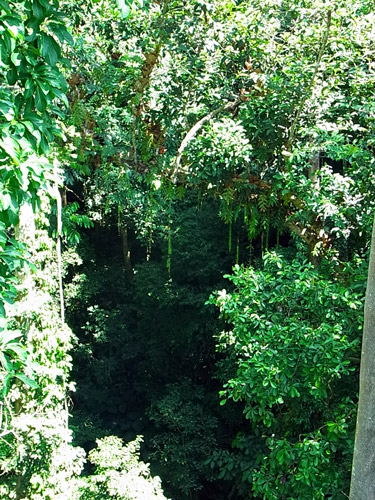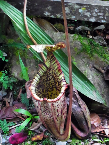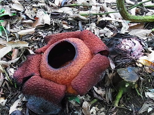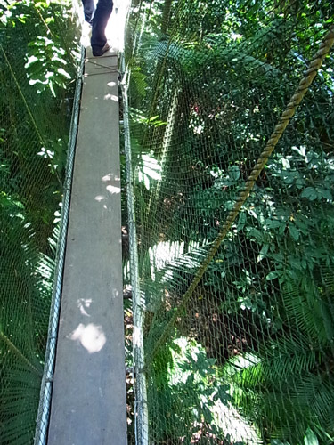 現地で最初のアクティビティは、キナバル公園へ。 キナバル公園は、ユネスコの世界自然遺産で、マレーシアで最初に世界遺産に登録された場所。 東南アジアで一番高い山、キナバル山(4,095m)を中心に、裾野に古い豊かな熱帯雨林が広がってる。 キナバル山はあいにく雲でかすんでよく見えなかったんだけど、 車窓からうっすら遠くに見えたその姿は、にわかには把握できない量感で、「えっ何あれ、山?!」と思った。 高いだけじゃなくて大きい。こういう山を見ると、山を崇拝するって当然だなぁと思う。 公園に着いて最初は、ポーリン温泉の区域へ。 ここは太平洋戦争中に日本軍が温泉を開発したのを、後に観光地として整備したもの。 たくさんの小さな浴槽に分かれた、露天風呂(という言葉とはかなりイメージ違うけど、露天風呂には違いない。)が並んでて、水着で入れる。足湯もある。 熱帯の太陽の下で温泉っていうのは、ちょっと気が乗らないね。 温泉はおいといて、ジャングルの中へ。 熱帯雨林っていうだけでもテンションあがる。 ここを訪れた目的は、ジャングルの樹冠の間に渡された吊り橋を歩く、キャノピーウォーク。 キャノピー=canopy=樹冠、林冠。 高いところだと地面から40mくらい、らしい。 吊り橋っていうけど、普通の安っぽいアルミの脚立をのばした物に、細い木の板を渡して、ロープとネットで吊るしただけのもの。かなり揺れる。 揺れるのでキャーキャー言いながら渡ってたんだけど、この距離で森を見下ろすことってまず無いし、地面を歩いてるよりずっと爽やかで楽しい。 動画載せれるかな? まともに撮ってる余裕はないよ。 この後、近くでちょうどラフレシアが咲いてるとのことで、見せてもらいに。 行き先は普通の農家。裏庭にラフレシアが生えている。生えているというのは正しいんだろうか。 数日しか咲かないから見れるかどうかは運次第ってことで、まったく期待してなかったんだけど、予定外の初・生ラフレシア。 昔々に大阪の花博で標本を見たときは、わけがわからん・・と思ったけど、今になって本物を見てもやっぱり、わけがわからん・・物体でした。 ラフレシアは臭いがひどいってよく言うけど、ボルネオ島のは、あまり臭わない。ハエは寄ってたけど。 2~3日ほど咲いて、しおれると焼け焦げたみたいに。 ところで、熱帯って何でも大きくて、普通の木の葉っぱも私たちの常識より相当大きいから、写真撮ってもサイズ感がよく分からなくなるんだよね。 再びワゴン車で移動して、植物園へ。 植物園、と言ってもすべて屋外展示で、野生の森をそのまま展示にした感じ。 熱帯の植物をゆっくり観察できる。 樹の幹に生えた苔からひょろりと出てるのは、世界で一番小さな蘭、らしい。 長さ2ミリくらいの、小さな小さな白い花。 手持ちコンデジの限界に挑戦・・。 蘭はほかにもいろんな種類が。 これはキナバル公園にしかない蘭の花。 ウツボカズラもいっぱいあった。 ボルネオ島は世界で一番ウツボカズラの種類が多いんだって。 森の空気をいっぱい吸い込んで、街へ戻った。今日はこの辺で。