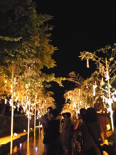 8月5日のお出かけで、京都でやってる「京の七夕2011」の堀川会場に行ってきた。 花灯路の夏バージョンみたいな感じ。 どういうイベントなのか事前に調べてもイマイチよく分からなかったので、 予想外にたくさん歩いたり、急いだりで、なかなかダメージを受けた。 けど演出は面白くて綺麗だった。 二条城からスタート。 壁に禍々しい感じのライトアップ。 二条城を出て、堀川の河岸へ。 堀川ってあんなに水流れてたっけ。 ゆーらゆらぷかぷか。 短冊には、小学生の願いごと。興味深い。 七夕飾りがキラキラ揺れて綺麗だった。 天の川。 流れ星も。 企画するの楽しそうだな。 ゴールに着いた時は歩ききったーってちょっとした達成感でした。 さて、これ↑は実はお出かけのオマケで。 この日のメインは・・・。 暑いな~。 かき氷が食べたいな~。 屋台とかのじゃなくて、ちゃんとした甘味処の、ふわっとさりさりとしたおいしいかき氷が食べたいな~。 と、思ってたら、相方さんがまるでそれを察したかのように(っていう私の妄想)おいしいかき氷のお店に連れて行ってくれた。 満足Vv ちょうど暑い日で、かき氷のお客さんでいっぱいでした。 お行儀よく。 もひとつおまけ。 この週末はずっと和服。 翌日は、シンプルな黒の単衣をなんとか華やかに着付て、お呼ばれに行ってきた。 場が華やぐ、って喜んでもらえて良かった。 PR